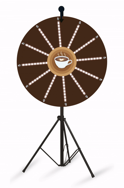 Im Mittelpunkt steht die stilvolle LED-Beleuchtung, die das Glücksrad zum Strahlen bringt – im wahrsten Sinne des Wortes. Die integrierten LED-Streifen lassen sich bequem per Fernbedienung steuern: Ob Farbwechsel, Helligkeit oder Leuchteffekte – ihr passt die Lichtstimmung in Sekundenschnelle an eure Marke oder das Eventdesign an. Perfekt, um die Aufmerksamkeit gezielt auf euer Angebot zu lenken.