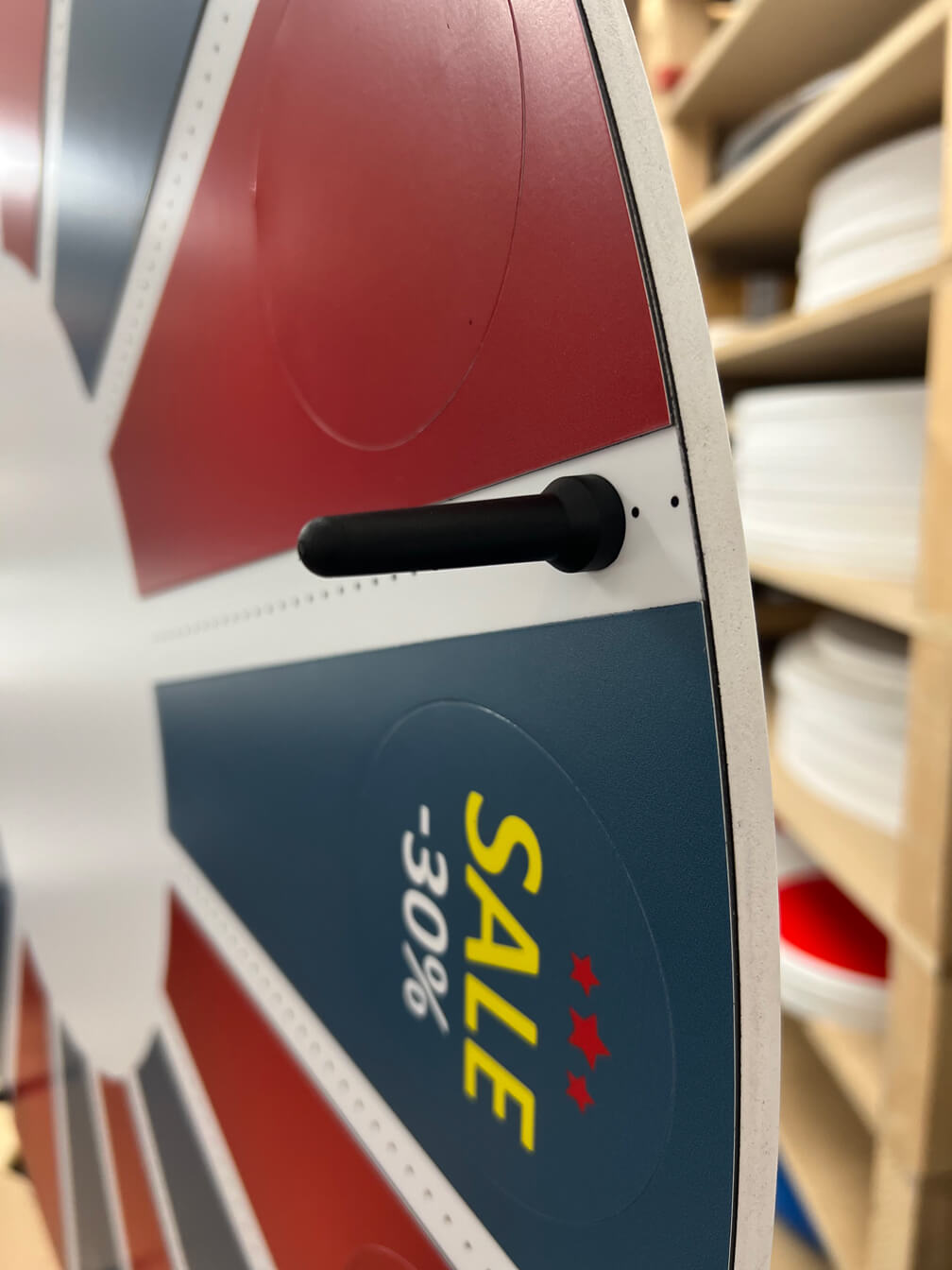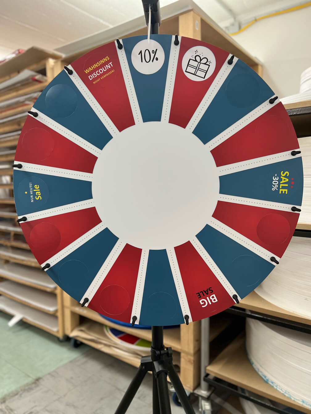 Als Hersteller von Glücksrädern bieten wir Ihnen natürlich auch die Möglichkeit an, Ihr Wunsch-Layout für Sie umzugestalten oder nach Ihren eigenen Vorstellungen neu zu entwerfen. Durch unsere direkt angebundene Grafik-Abteilung können wir Ihre Vorstellung eines personalisierten Glücksrads gezielt und kostengünstig umsetzen. Sie erhalten von uns immer einen Korrekturabzug zur Druckfreigabe, bevor wir mit der Produktion beginnen.