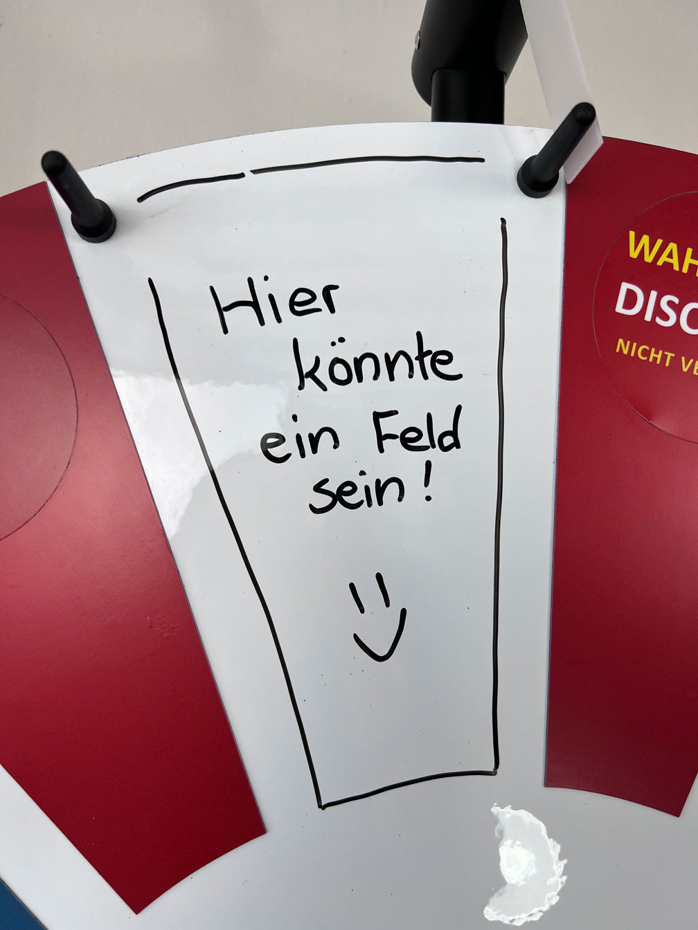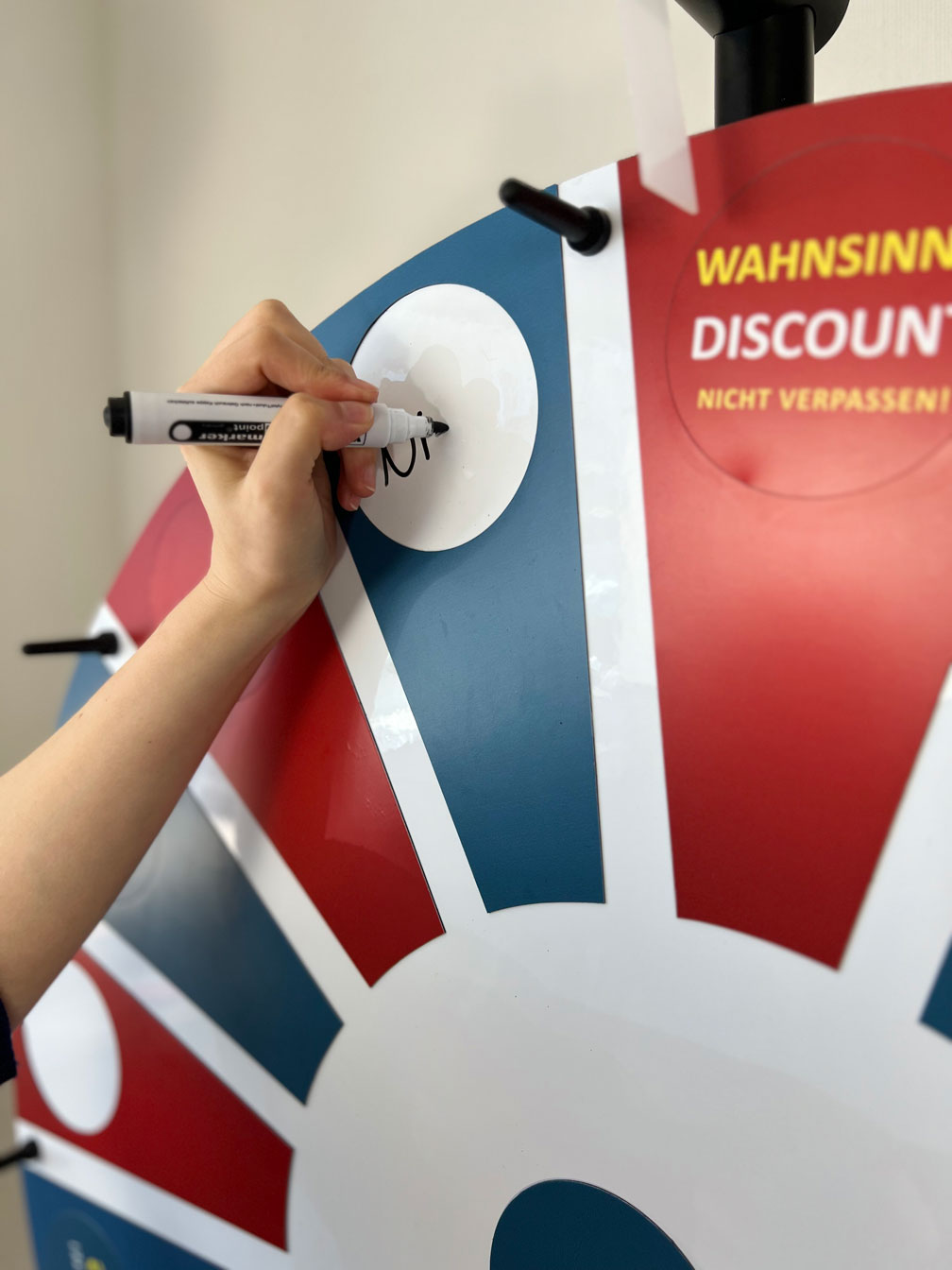 • Das Glücksrad ist vollflächig mit einem Whiteboard-Marker beschreibbar