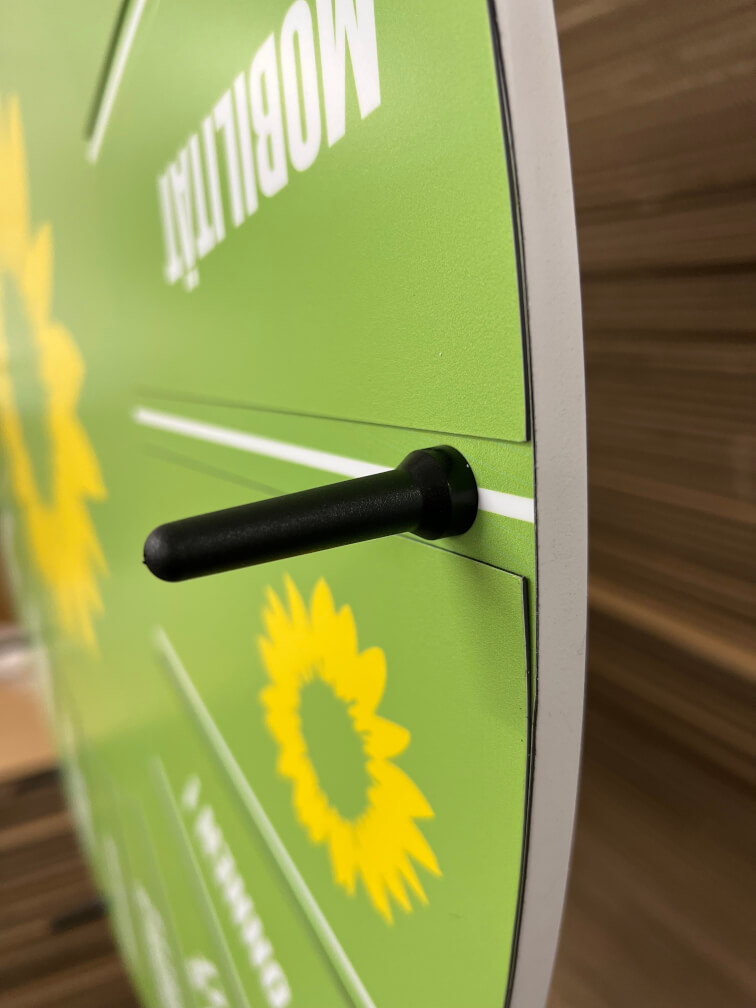Unsere witterungsbeständigen Glücksräder haben eine sehr lange Lebensdauer, was diese recht nachhaltig macht. Mittlerweile können Sie unsere Glücksräder auf vielen Events und Veranstaltungen in ganz Europa wiederfinden. Für jedes unserer Modelle bieten wir Umbrandings an, denn Glücksräder aus unserer Produktion halten oft länger als die meisten Firmen-Logos. Wir bieten nicht nur 2 Jahre Garantie auf unsere Flabber und Pins, wir bieten Glücksräder für Jahrzehnte.
