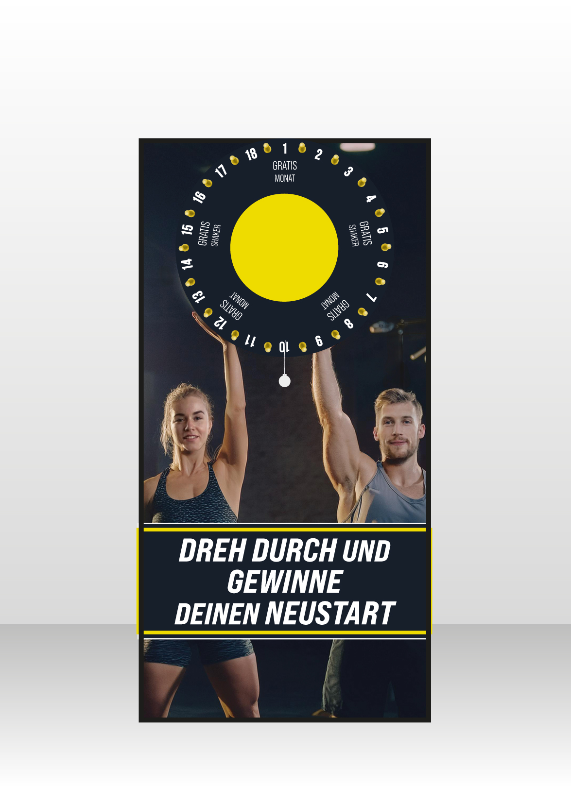 Gefertigt wird unser Glücksrad Wall of fortune aus witterungsbeständigen Materialien, ist für den häufigen Einsatz konzipiert und bleibt auch bei intensiver Nutzung stabil und langlebig. Ein großer Vorteil des Wall of fortune ist seine flexible Gestaltbarkeit und der leichte Aufbau. Es lässt sich mit eigenen Motiven, Farben und Logos personalisieren, wodurch Sie Ihre Marke effektiv präsentierten können. Die großzügige Fläche bietet viel Raum für kreative Ideen, sodass Sie das Glücksrad passgenau an Ihre Corporate Identity anpassen und einen hohen Wiedererkennungswert schaffen können. Das Wall of fortune ist speziell für Indoor-Veranstaltungen entwickelt und schafft eine ansprechende und professionelle Präsentation. Die stabile Bauweise sorgt für einen sicheren Einsatz in geschlossenen Räumen, wo es die Aufmerksamkeit der Besucher gezielt auf Ihren Stand lenkt und für ein unvergessliches Markenerlebnis sorgt.