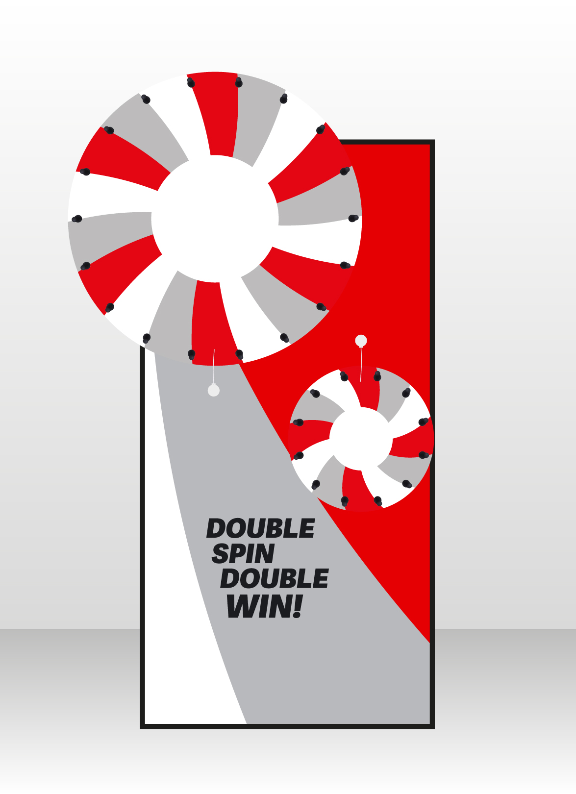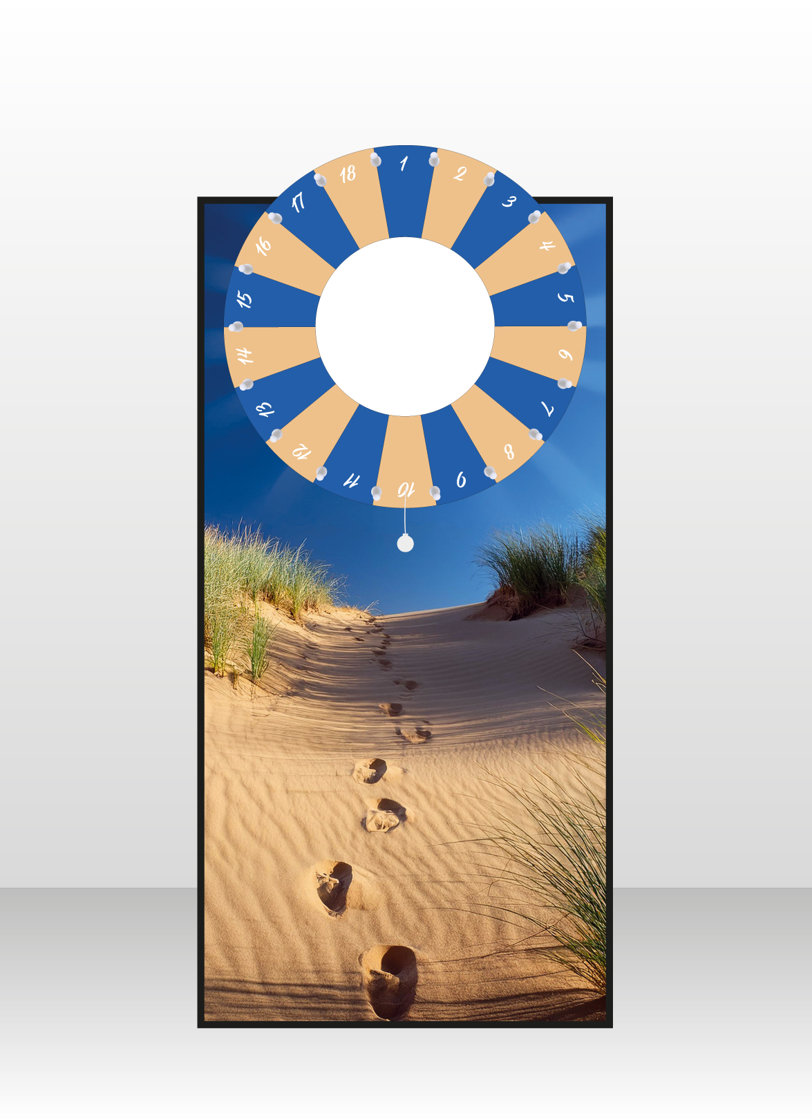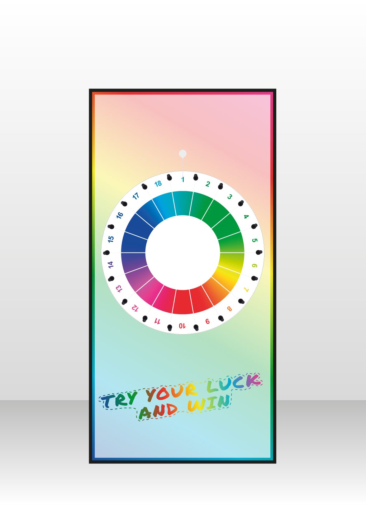 Unser Glücksrad Wall of fortune ist speziell für Ihren großen Werbeeinsatz entwickelt worden und bietet mit einer Höhe von 160 cm und einer Breite von 80 cm eine eindrucksvolle Werbefläche.