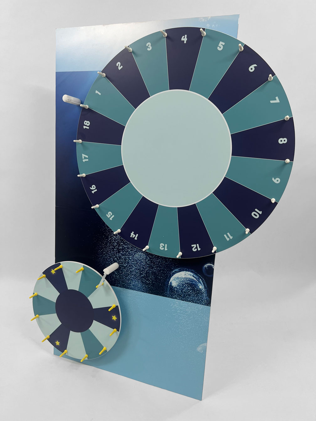 Zweiteiliges Glücksrad, zusammensteckbar, einfacher Aufbau
