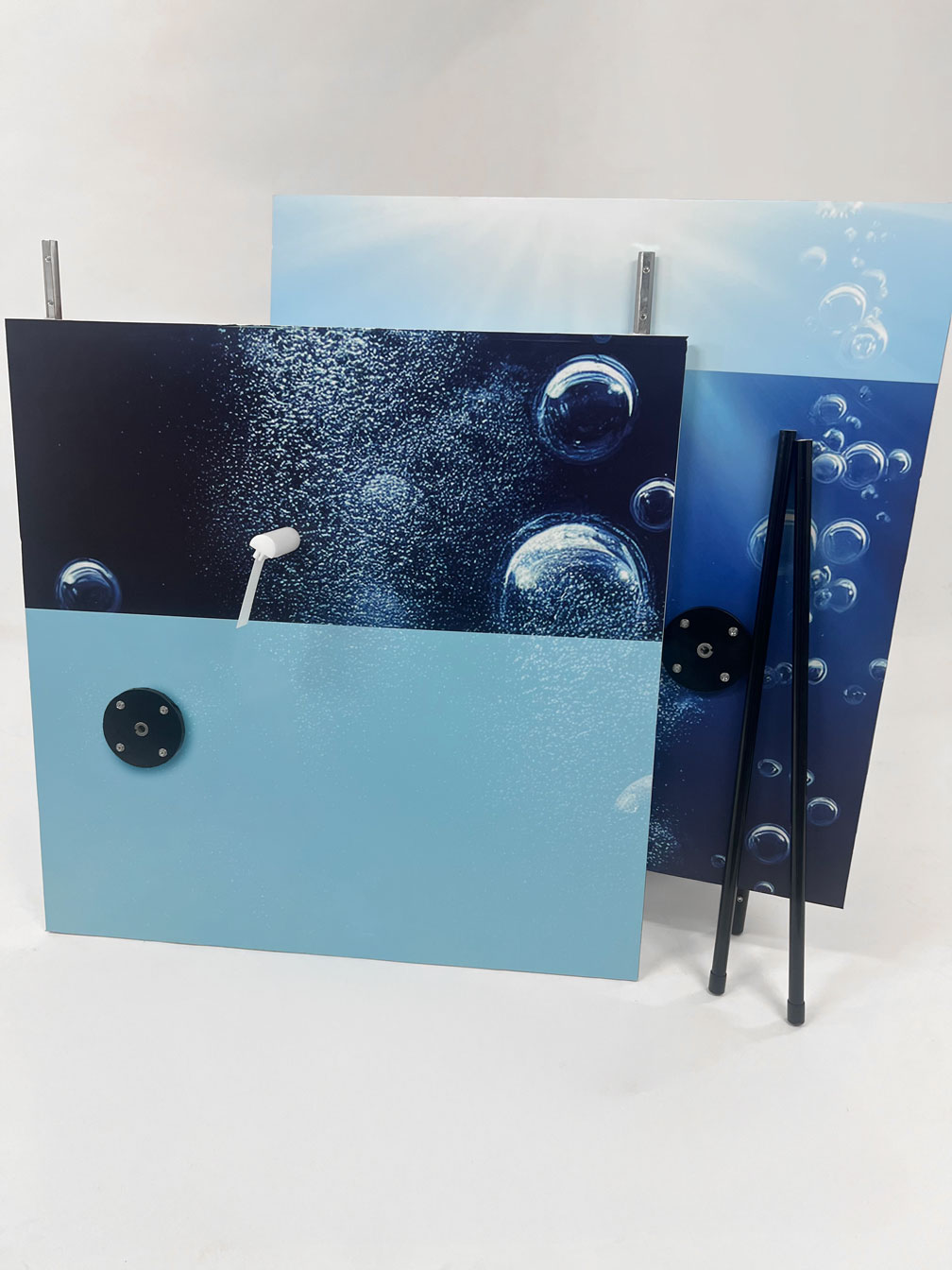 Dieses Modell ist mit ein oder zwei Scheiben erhältlich. Die Rückwand wird zweiteilig ausgeliefert und kann in kürzester Zeit unkompliziert ohne Werkzeug zu einer großen Werbefläche montiert werden.