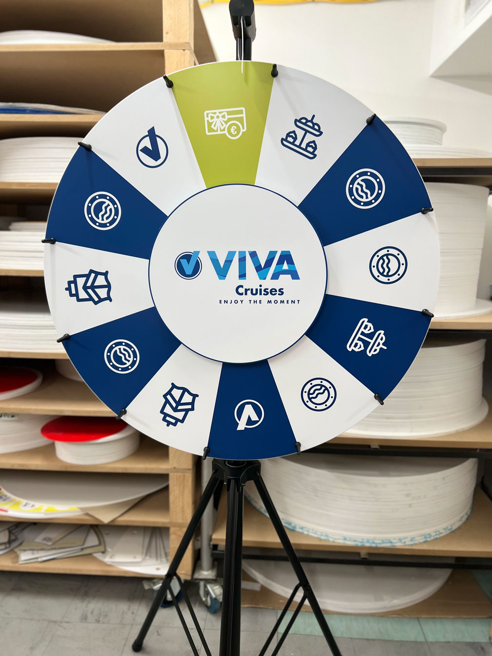 Som producent af lykkehjul tilbyder vi dig naturligvis også muligheden for at redesigne dit ønskede layout for dig eller redesigne det efter dine egne ideer i vores lykkehjulsfabrik. Takket være vores direkte forbundne grafiske afdeling kan vi realisere din idé om et personligt lykkehjul på en målrettet og omkostningseffektiv måde. Du vil altid modtage et prøvetryk til godkendelse, før vi starter produktionen.